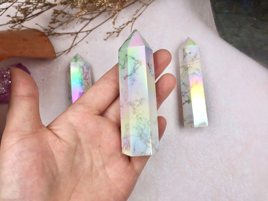 Aura Howlite Tower Aura-Infused Crystal Crystal Meditation Tool Aura-Enhanced Howlite Obelisk