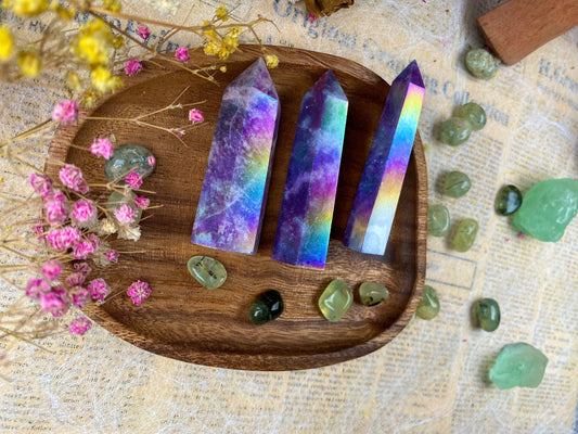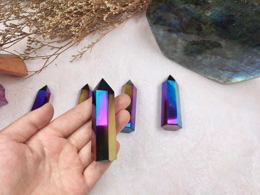 Aura Quartz Crystal Tower Meditation Tool Aura-Enhanced Quartz Crystal Obelisk