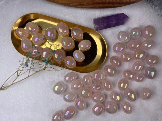 Aura Rose Quartz Tumble Stone 20-30mm 100g,Healing Crystal,Home Decor,For Gift