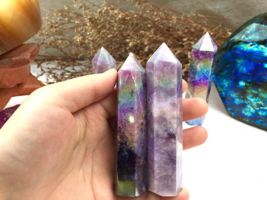 Aura Lepidolite Tower: Stress Relief, Sleep Aid, Spiritual Healing, Energy Cleanse, Meditation Support, Home Decor, Unique Spiritual Gift