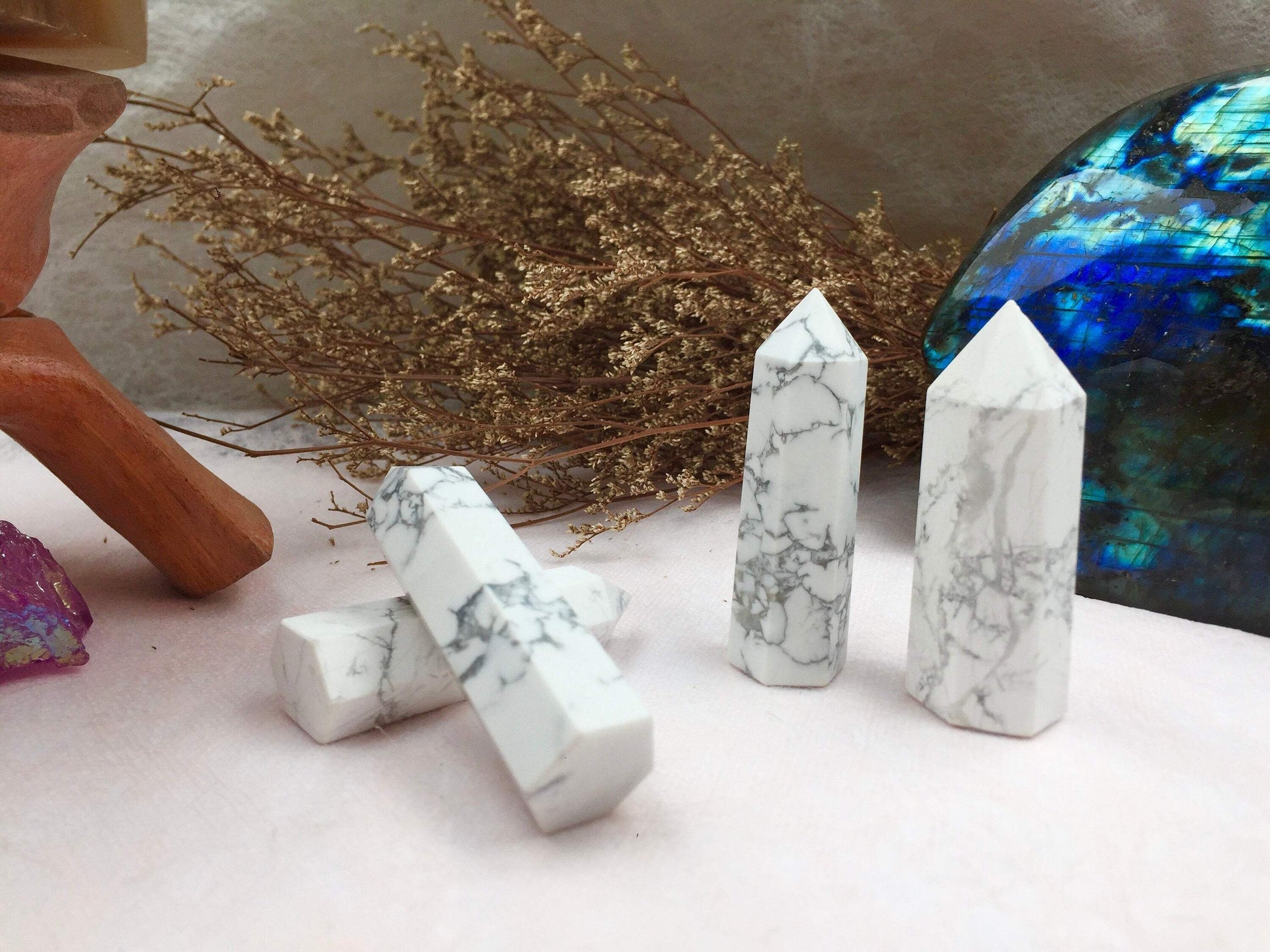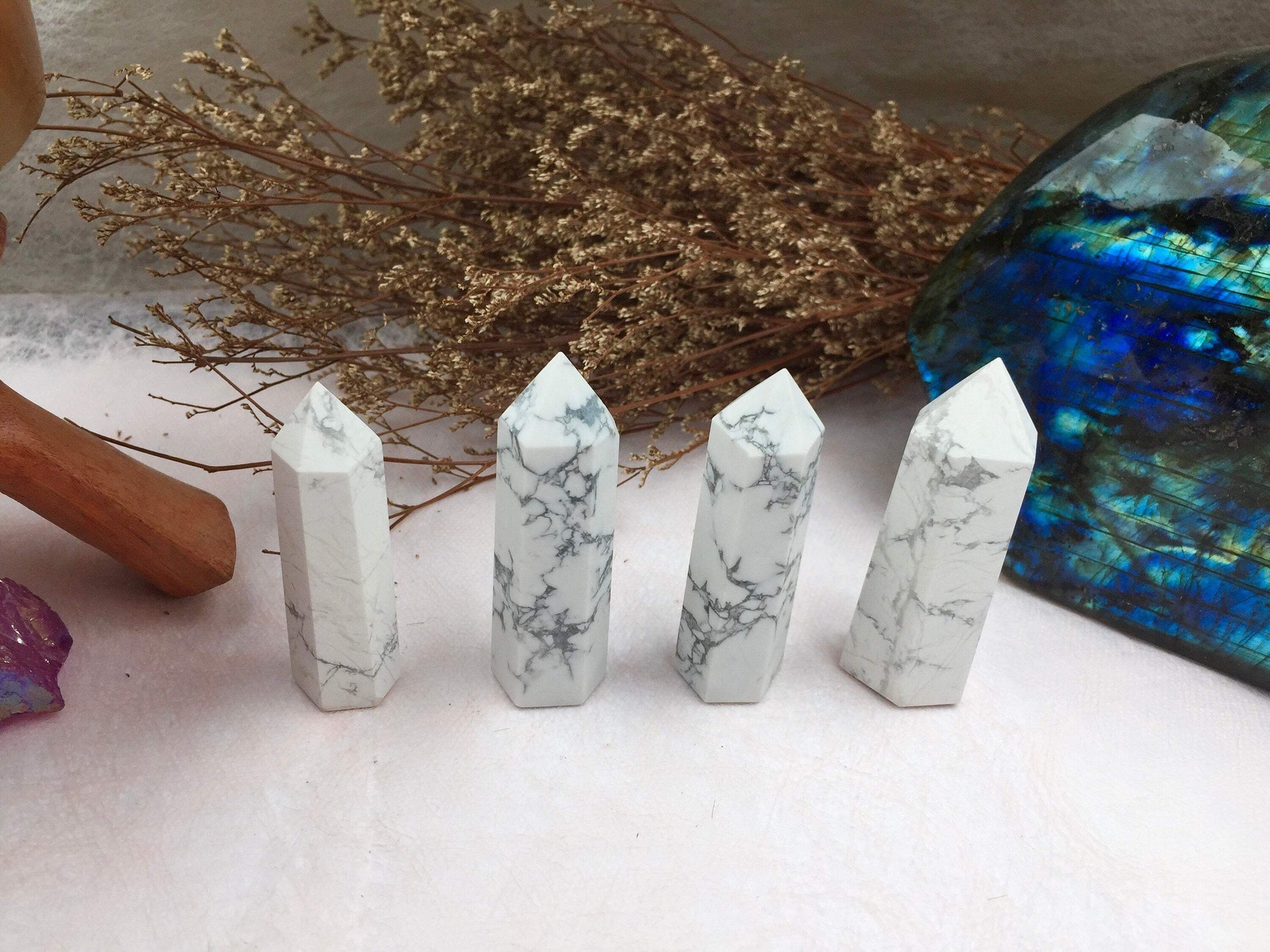 - "Experience the power of crystal healing with the Howlite Tower. Revered for its potent healing properties, this stone can help to cleanse and balance your chakras, promoting calmness, improved memory, and emotional well-being."