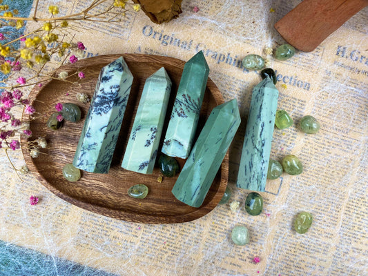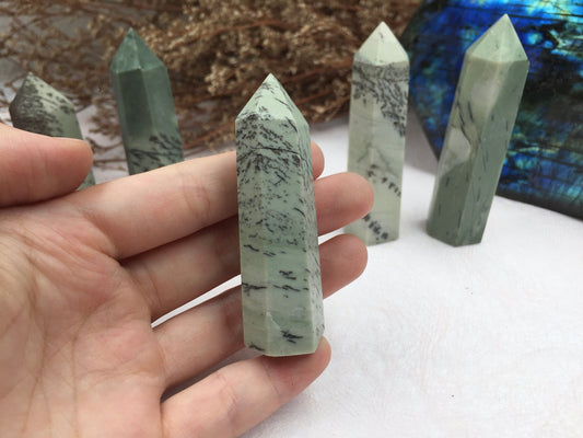 Dendritic Jade Tower,Dendritic Jade Point,Crystal Tower/Wand,Healing Crystal,Reiki Chakra Stone,Home Decor,For Gift